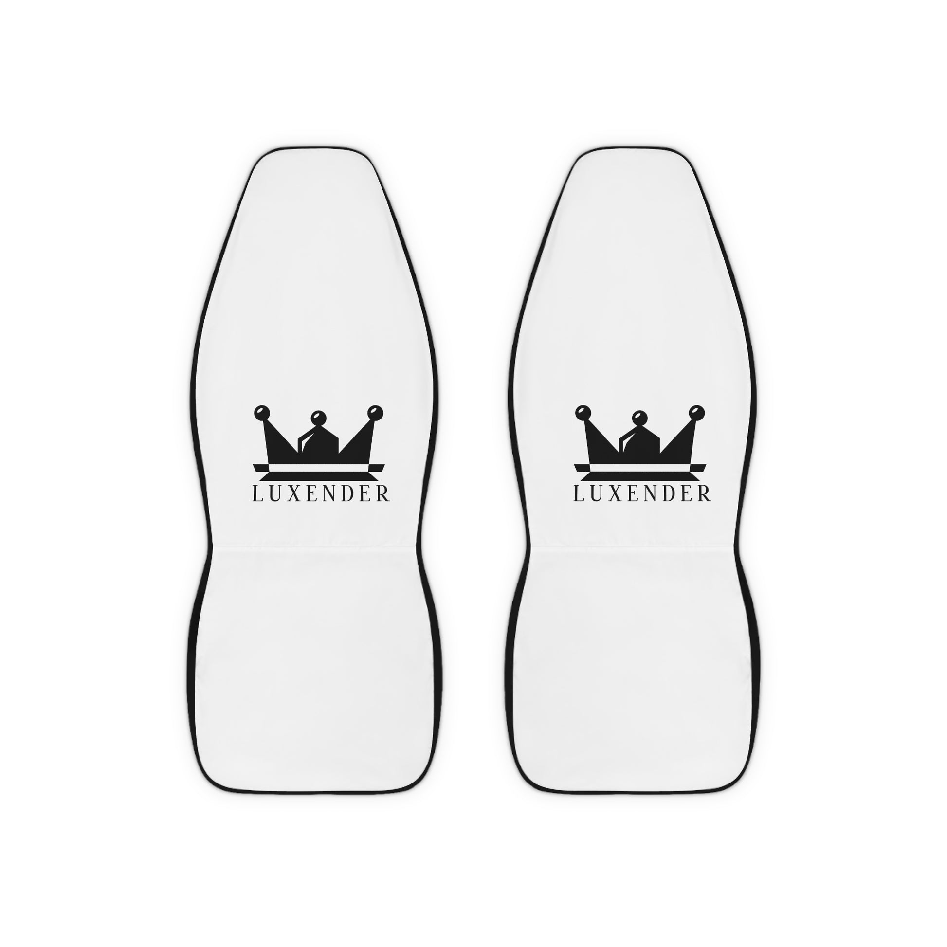 Crown Logo Polyester Car Seat Covers — Luxury White Front Seat Protectors