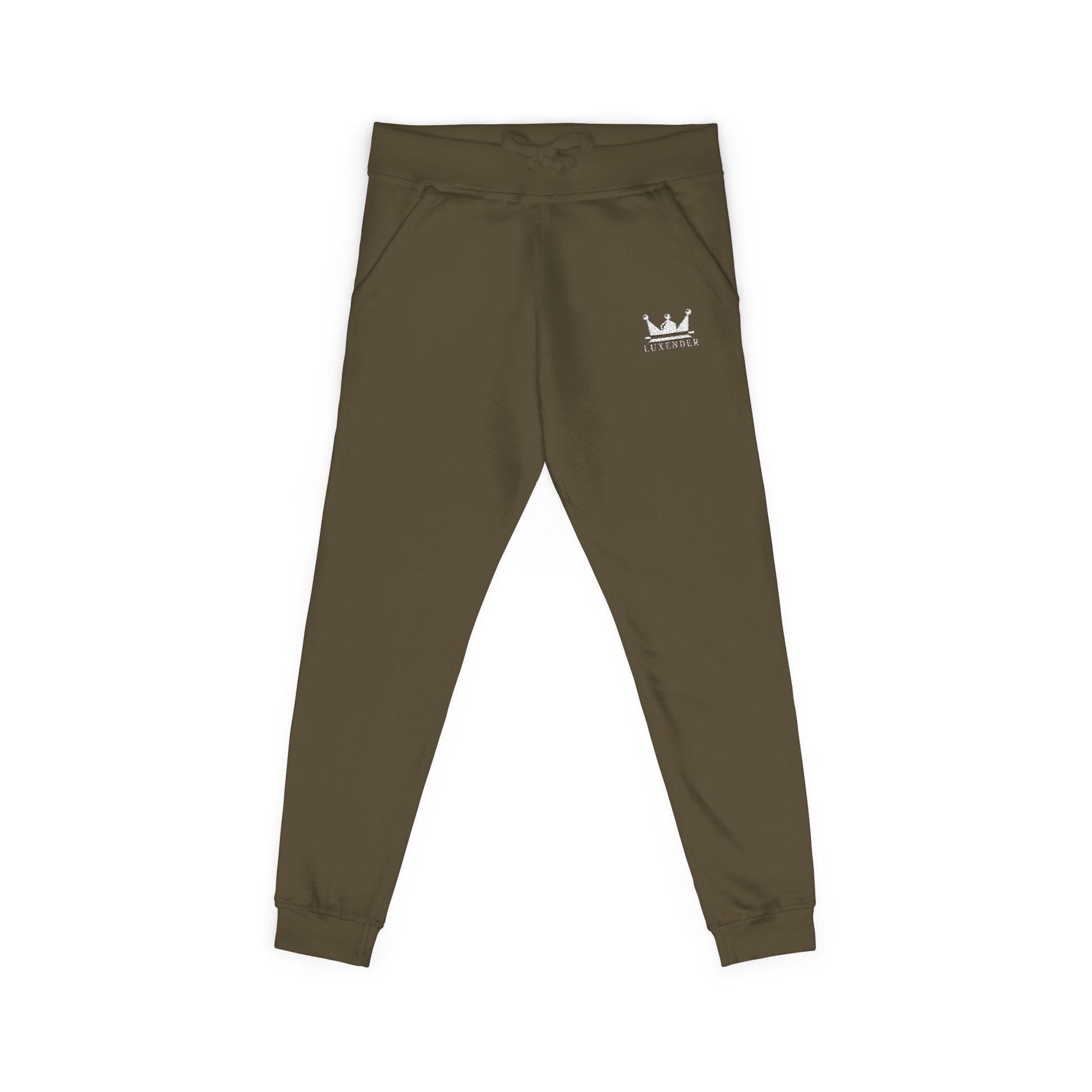Embroidered Crown Sweatpants — Olive Fleece Joggers